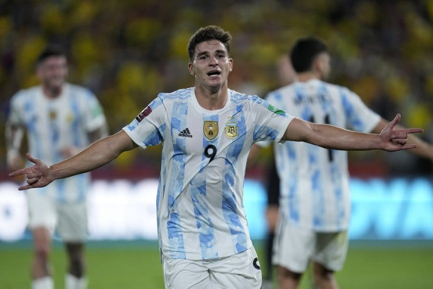 Sin embargo, la Albiceleste golpeó primero en el encuentro. En una gran jugada colectiva, Lionel Messi abrió hacia la izquierda para Nicolás Tagliafico, quien envió un centro al corazón del área. La pelota le quedó a Julián Álvarez: la joven figura de River remató fuerte, hacia el palo izquierdo, y abrió el marcador, en su primer gol con la camiseta del conjunto nacional.